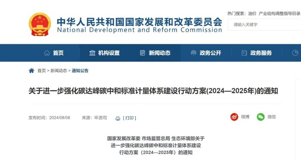 8月8日,國家發(fā)改委、市場監(jiān)管總局、生態(tài)環(huán)境部發(fā)布的《關(guān)于進(jìn)一步強化碳達(dá)峰碳中和標(biāo)準(zhǔn)計量體系建設(shè)行動方案(2024—2025年)的通知》指出,2024年,發(fā)布70項碳核算、碳足跡、碳減排、能效能耗、碳捕集利用與封存等國家標(biāo)準(zhǔn),基本實現(xiàn)重點行業(yè)企業(yè)碳排放核算標(biāo)準(zhǔn)全覆蓋。2025年,面向企業(yè)、項目、產(chǎn)品的三位一體碳排放核算和評價標(biāo)準(zhǔn)體系基本形成,重點行業(yè)和產(chǎn)品能耗能效技術(shù)指標(biāo)基本達(dá)到國際先進(jìn)水平,建設(shè)100家企業(yè)和園區(qū)碳排放管理標(biāo)準(zhǔn)化試點。