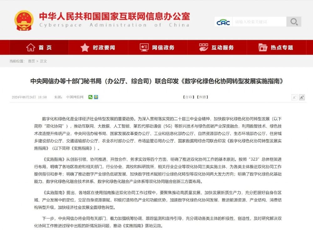 數字化和綠色化是全球經濟社會轉型發展的重要趨勢。為助力實現碳達峰碳中和,加快數字化綠色化協同轉型發展(以下簡稱“雙化協同”),推動互聯網、大數據、人工智能、第五代移動通信(5G)等新興技術與綠色低碳產業深度融合,利用數智技術、綠色技術改造提升傳統產業,中央網信辦秘書局等十部門秘書局(辦公廳、綜合司)聯合印發《數字化綠色化協同轉型發展實施指南》(以下簡稱《實施指南》)。本指南主要面向各地區政府和相關部門,行業協會、高校和科研院所等機構,以及相關行業企業。不同主體要依據本指南相關內容,部署和開展各項雙化協同工作,主要包括數字產業本身的低碳化發展以及數字化如何賦能9大行業低碳轉型。